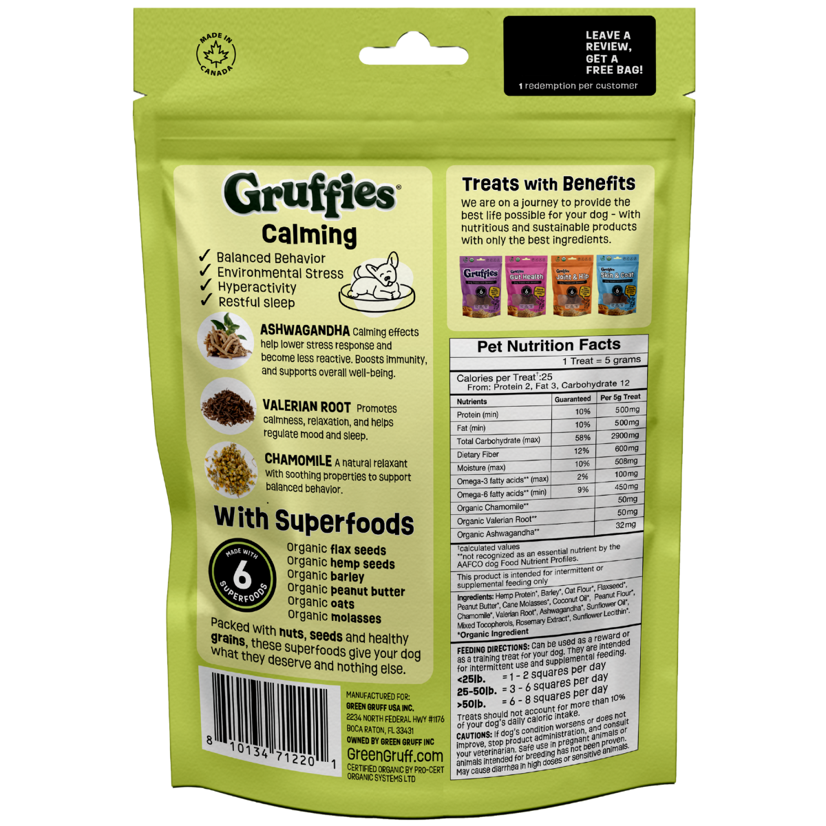 All Gruffies products are made in Vernon, B.C. Canada in FDA-approved facilities that meet Good Manufacturing Practice (GMP) and Safe Quality Food (SQF) Program certifications.